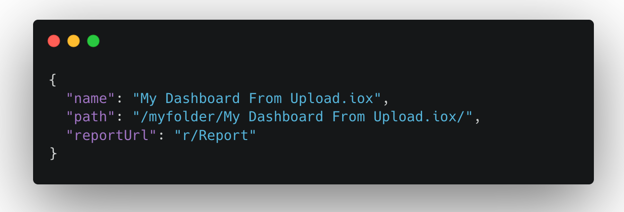 | reportUrl | Provided only if the template defines a report to open. Append to the path property to build the full report URL. |
