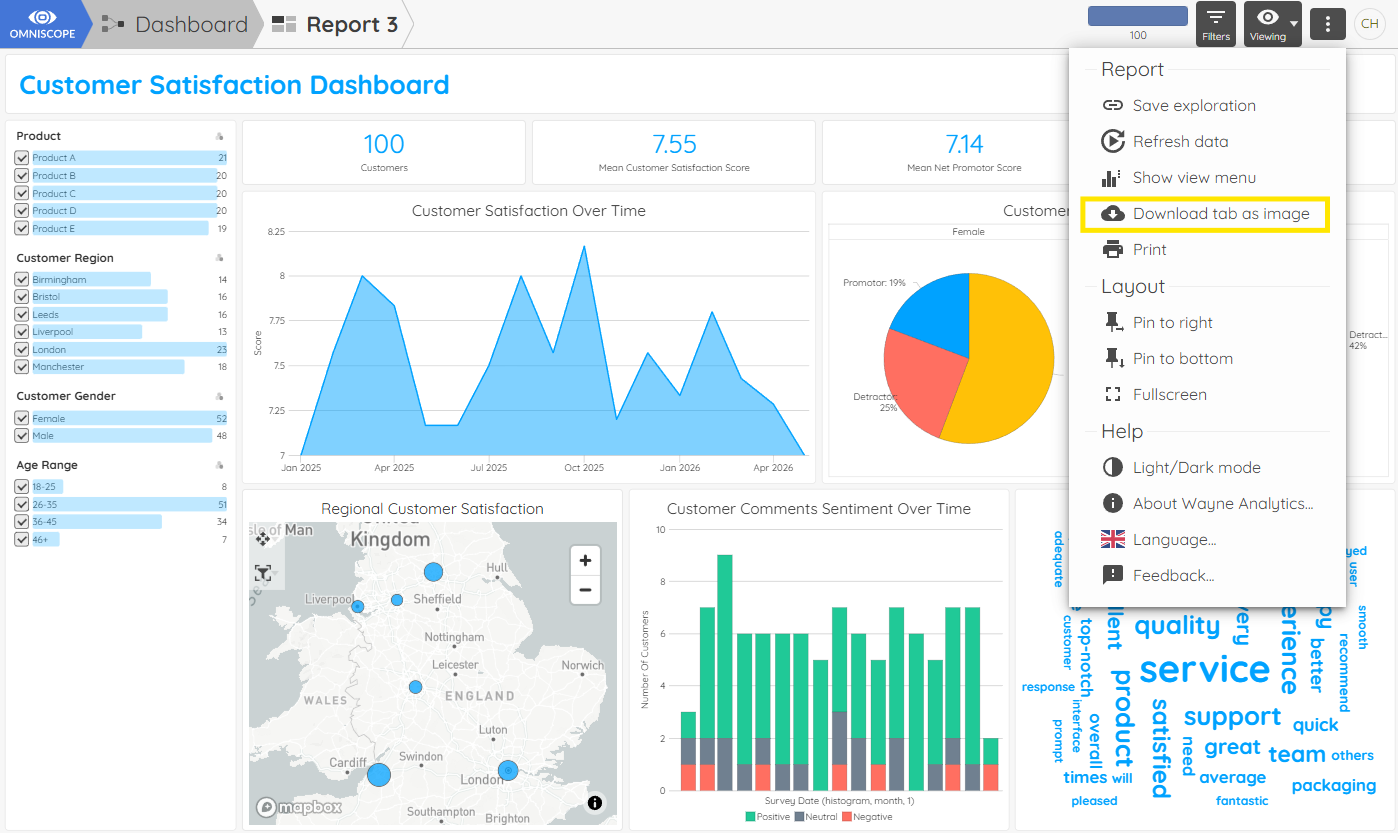 Omniscope reports support image download for both individual views and entire tabs.