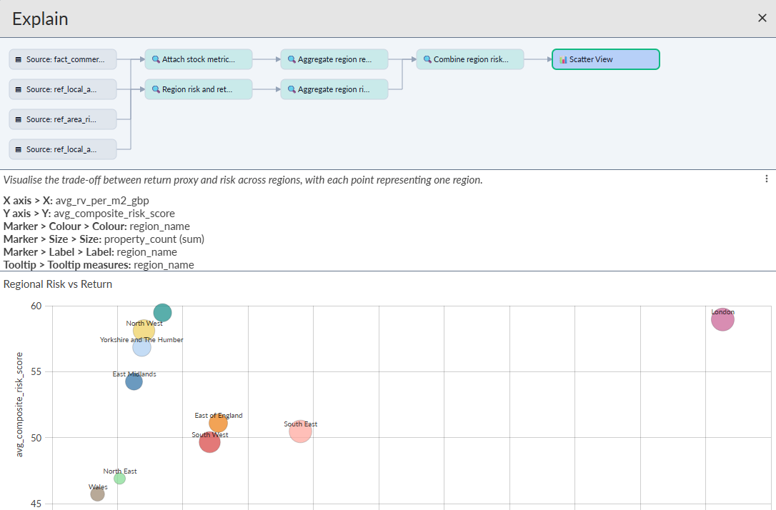 It helps you and your users explore data, understand trade-offs and explain results in a way that's transparent and repeatable. Because it show its workings, its something analysts can trust.