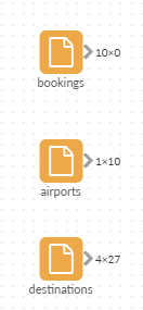 Start by creating a new Omniscope project and import the three CSV files: bookings, airports and destinations.