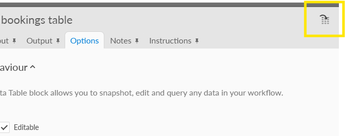 After connecting a Data table block, open it and click Refill this data table block with input data.