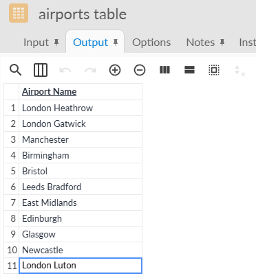 Data can now be edited directly in the workflow. For example to add a new airport: