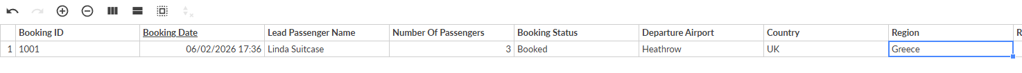 In this scenario, agents should be able to edit values and add new bookings, but not change the table structure. Disable Columns.
