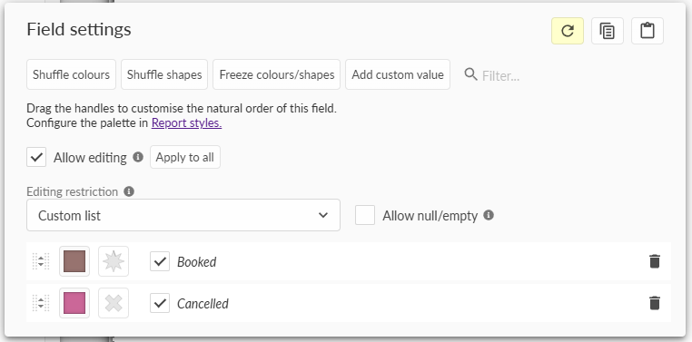 Some fields only need a small, fixed set of valid values. A good example is Booking Status.