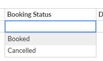 Now in the Editable Table, double-click a cell in the Booking Status column. Instead of a text input, a dropdown appears showing the allowed values.