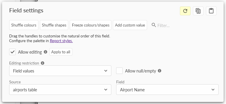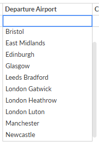 Next, we'll restrict the Departure Airport field using looking data rather than a custom list.