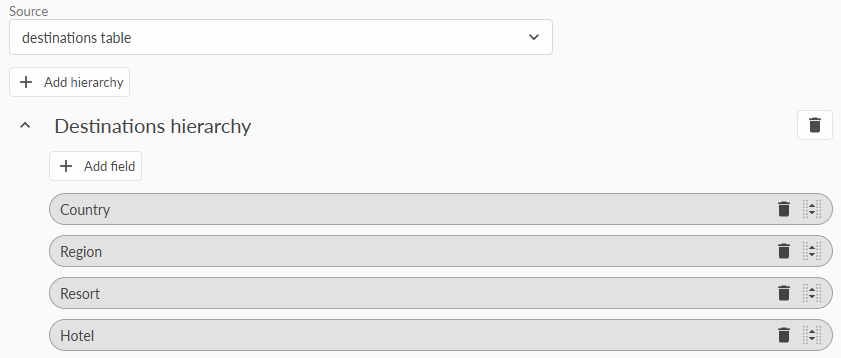 Select the destinations data source and create a hierarchy with the following fields, in order: