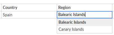 In addition to free-text editing and simple value lists, edits can now be restricted to values from other data sources. These restrictions can also be linked together using hierarchies, allowing choices in one field to depend on selections made in another.