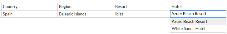 In an upstream value changes, all downstream values are cleared automatically. For example, changing the country clears the region, resort and hotel fields.